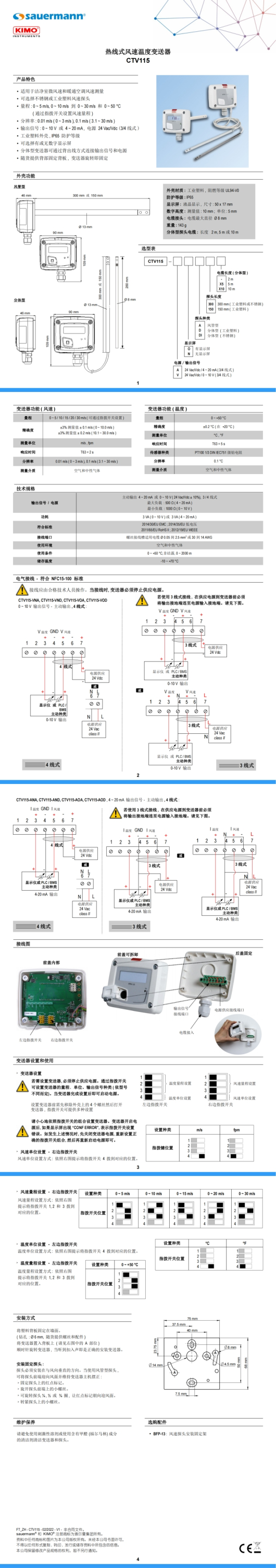 法国KIMO凯茂风温风速传感器CTV115-AND300 DC4-20mA