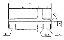 9009 加长适配器商品编号公称直径螺丝 T1螺丝 T2总长度 L维度 A维度 BCDΦ十六进制90091/4R 1/4G 1/4 型71508135.5193/8接线端子R 3/8G 3/8 型78558157221/2R 1/2G 1/29365101810273/4接线端子 R 3/4G 3/4 型11280122016361”R 1 英寸G 1 英寸11985122221.541