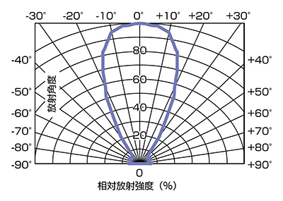 原始紫外线 LED 的峰值发射波长为 365 nm,方向性为 ±20°。 通过使用 LED 的一个特性——单一波长,可以比使用黑光等更准确地捕捉工件的特性点,并且可以长时间捕捉稳定的图像。 此外,我们丰富的产品阵容可根据检测对象、检测环境和光学系统提供最佳照明。